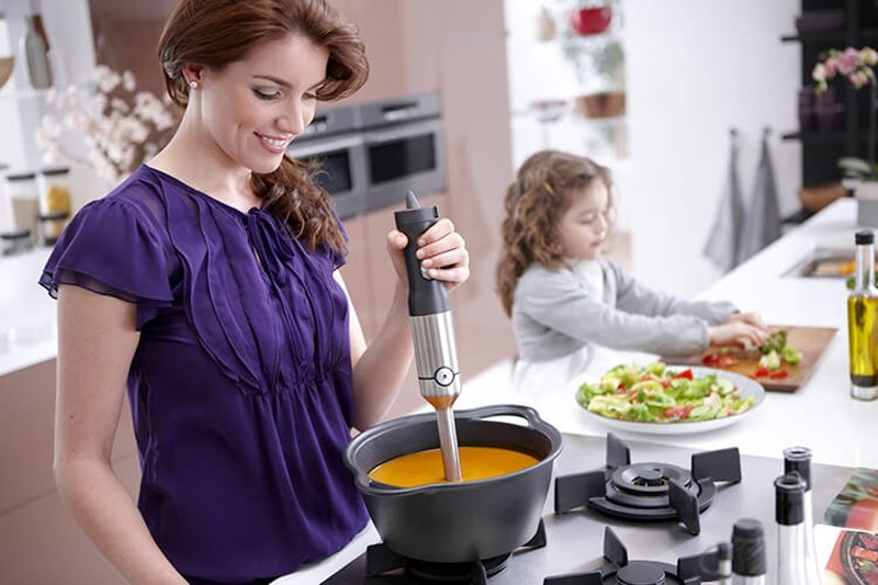 | Переваги | Може використовуватися в глибоких каструлях, має блендерні ножі з нержавіючої сталі, доступні бездротові моделі, має протизосова покриття. |